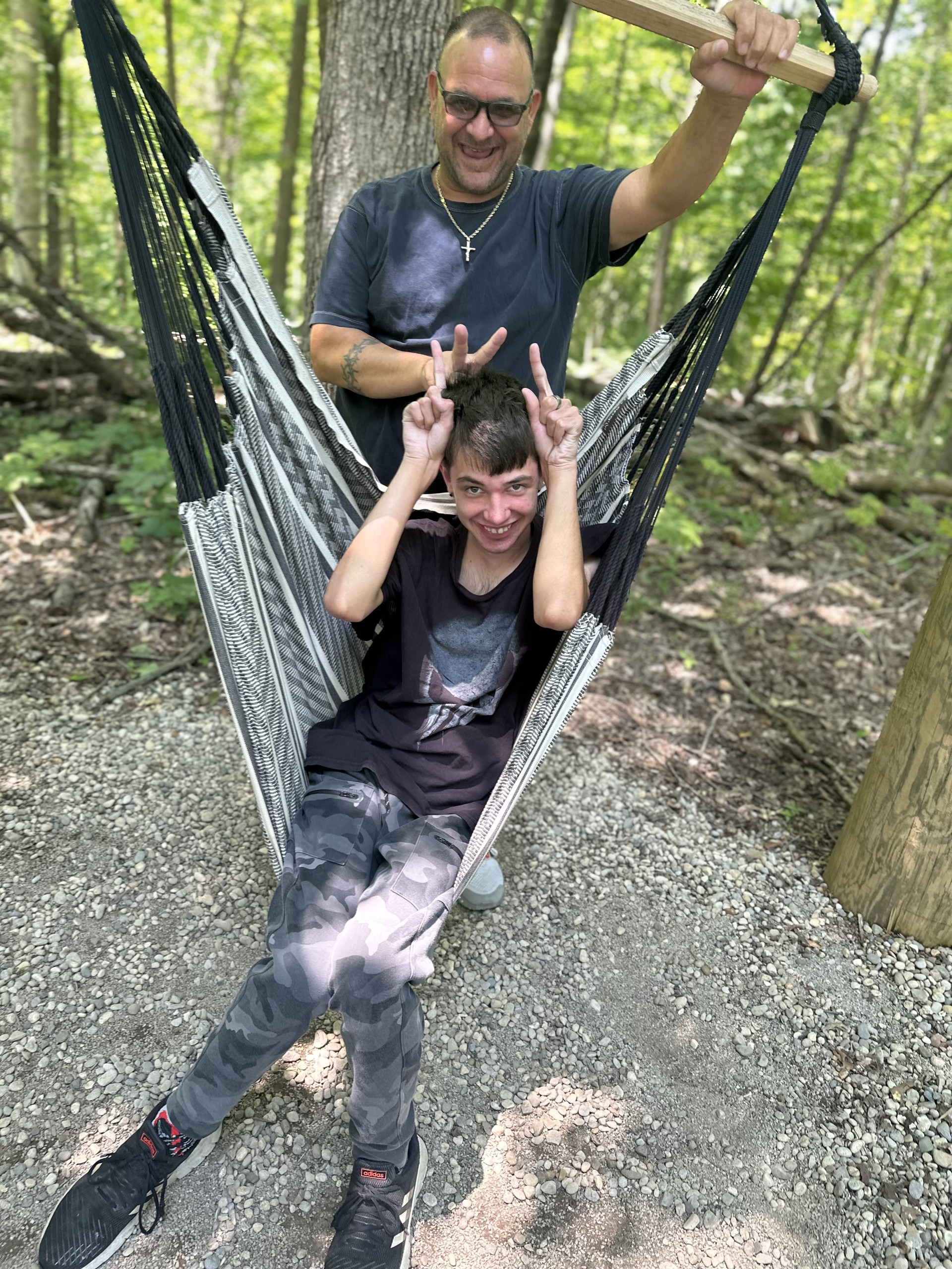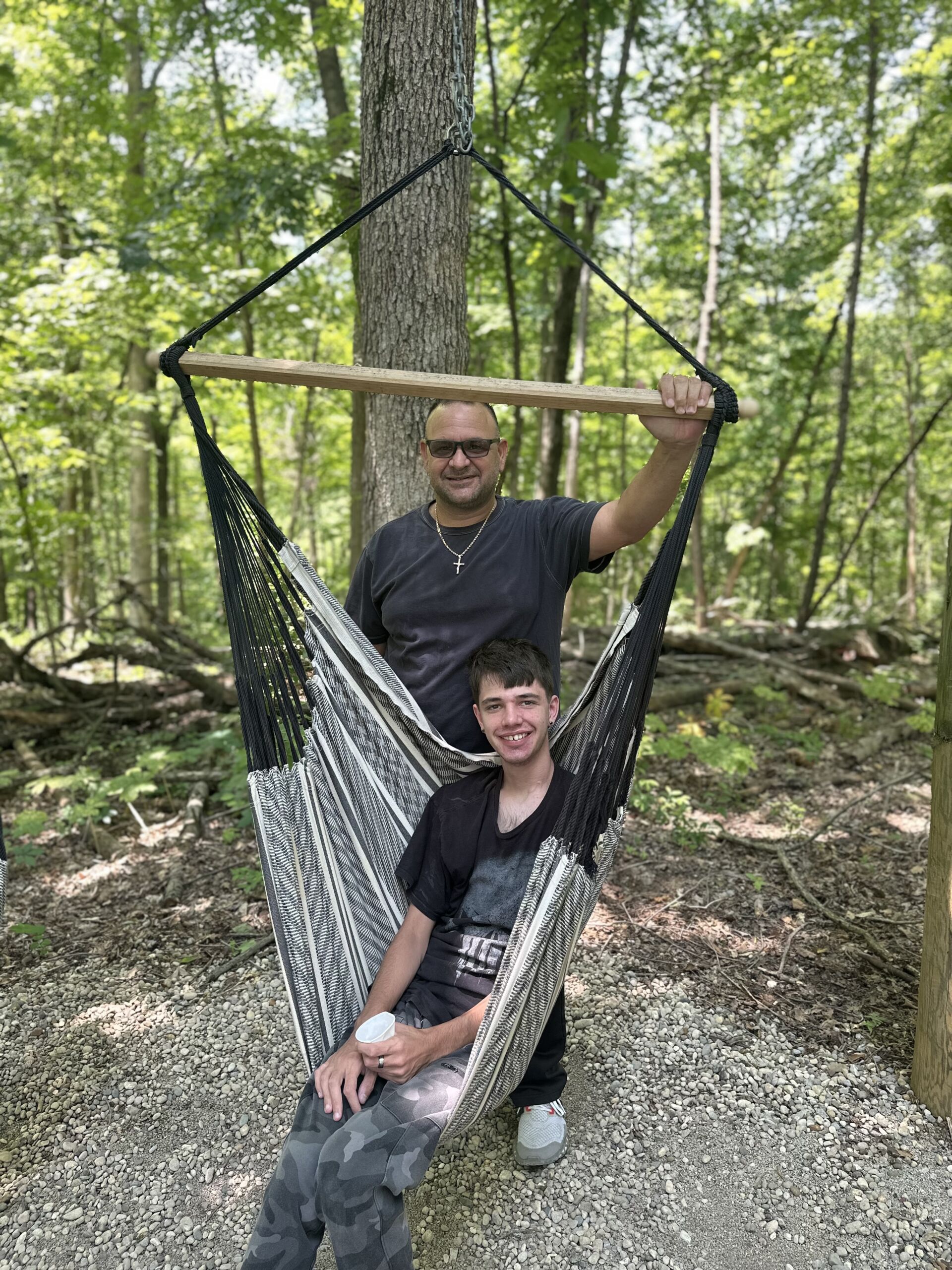 Now 18, Bryce has made this journey from Louisiana to Ohio more times than most campers—year after year, flight after flight—because what happens at Camp Joy is worth every mile. His family has flown over 800 miles each way, many times, so Bryce could return to the one place that makes him feel free, joyful, and fully himself. In earlier years, it was his mom, Rebecca, who made the journey with him. Since her passing three years ago, his dad, Brian, has carried that torch with steady devotion and deep love.