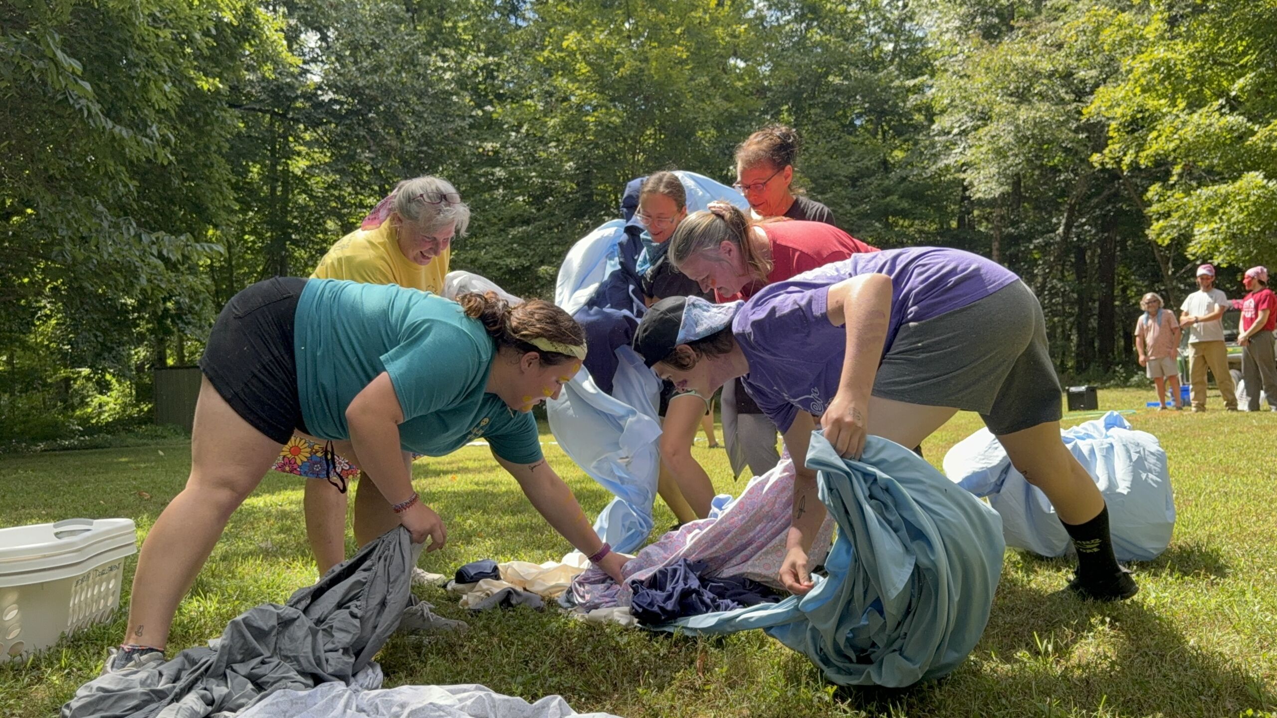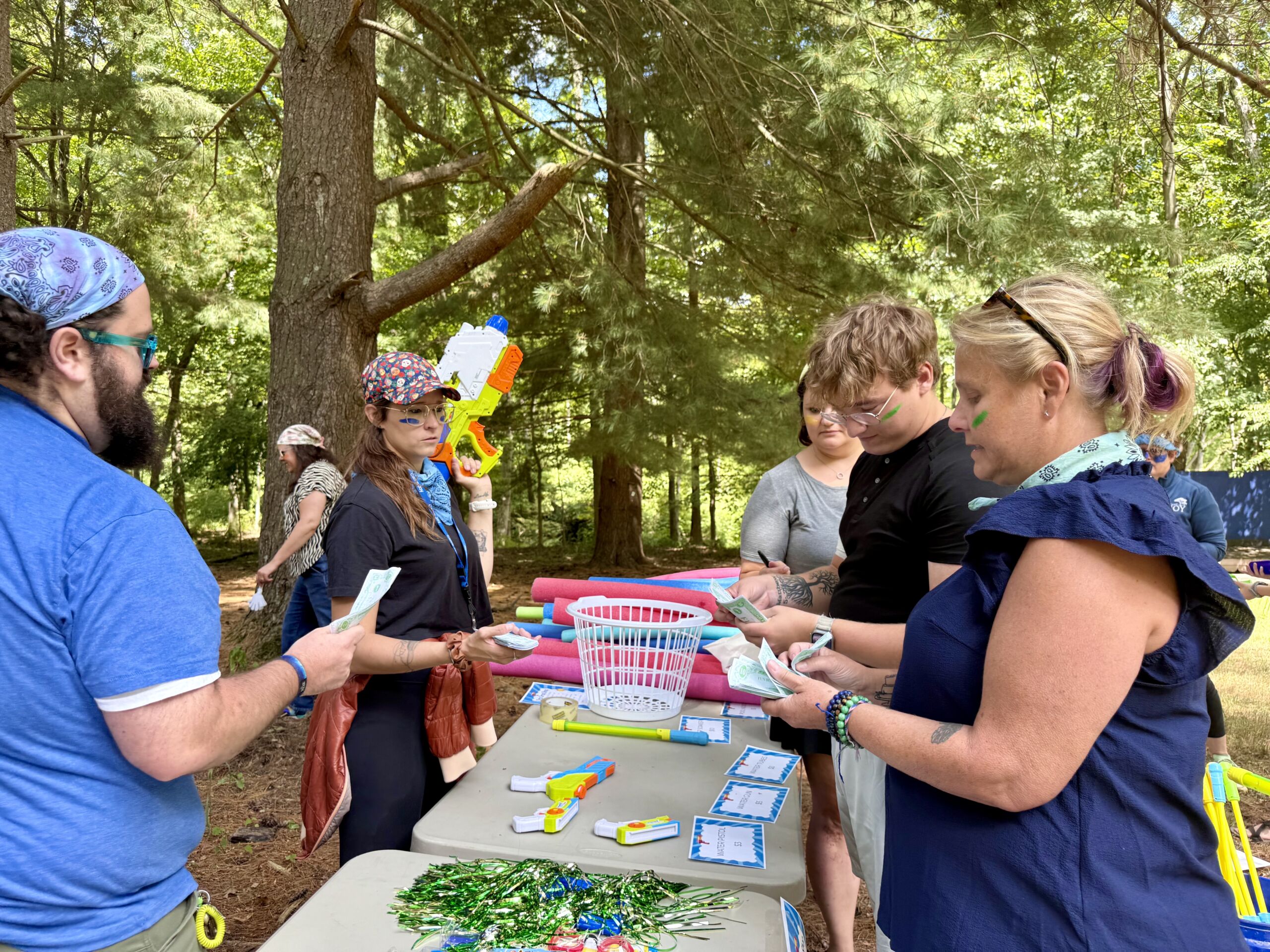 Led by our Advancement Team, the day was filled with color, laughter, and a good dose of friendly competition. Staff split into teams, donned tie-dyed bandanas and face paint, and cheered one another on through challenges that had us racing with eggs, folding sheets, hula hooping, tossing balloons, and holding up the hefty backpacks our outdoor educators carry every day. The finale? A surprise camp-wide water fight complete with water balloons, super soakers, and plenty of laughter.